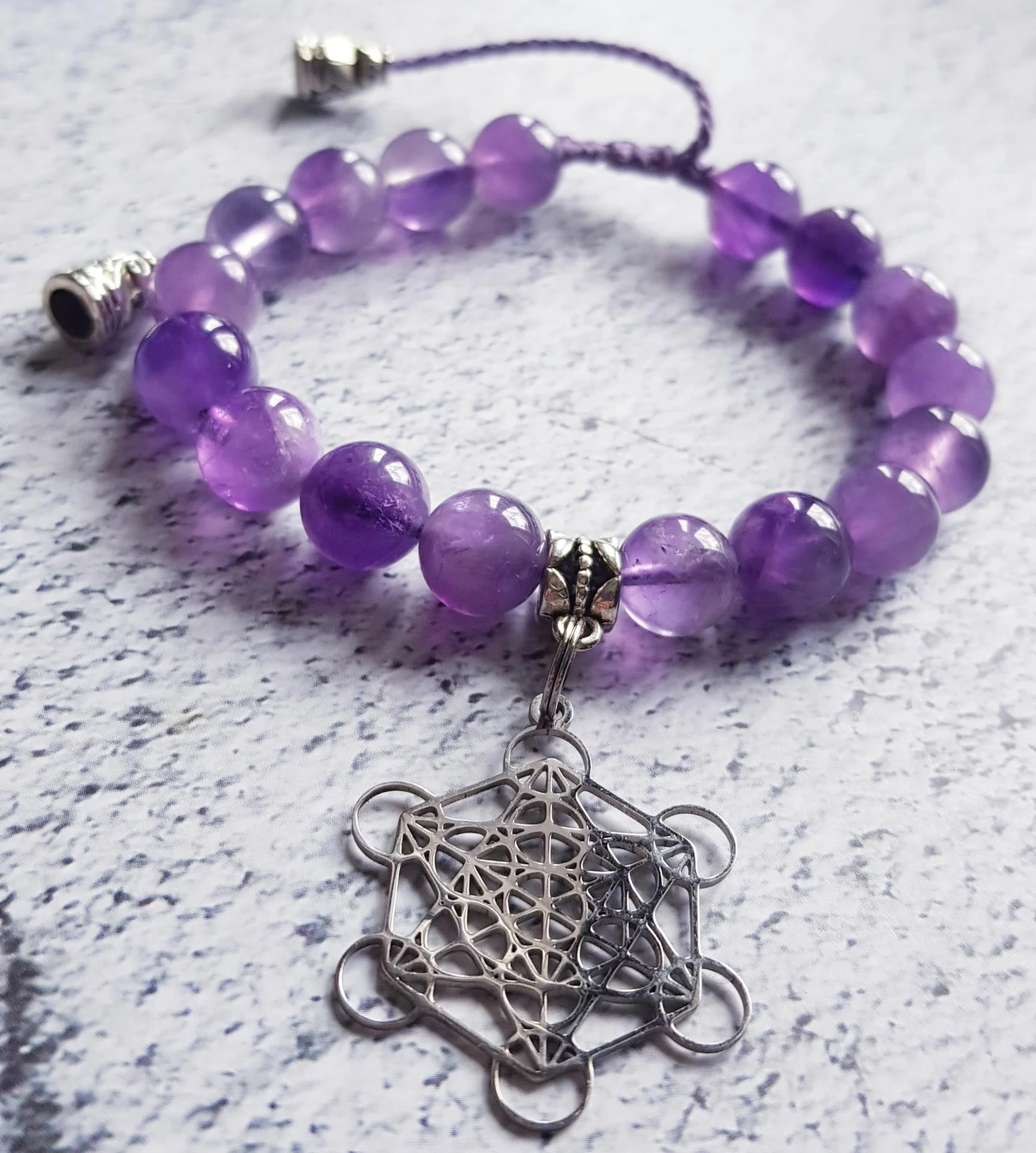 SYSTÈME IMMUNITAIRE - PURIFICATION - SOMMEIL Bracelet "Métatron" en Pierres Naturelles d'Améthyste de 6.8.10 Mm sur cordon ajustable.Ce magnifique bracelet élaboré en Pierres Naturelles d'Améthyste , un bijou entièrement fait main, de même que toutes les créations proposées par "Christ'Arts".En améthyste de haute qualité afin de vous faire bénéficier de la totalité des vertus et des propriétés énergétiques de cette pierre fabuleuse, sans rien enlever à son éclat ni à sa beauté. Les pierres de ce bracelet en améthyste sont montées sur un cordon ajustable afin de s’adapter au mieux à votre poignet.C'est la Pierre des Hommes d'affaires.Chakra Couronne - Signes Astrologiques de prédilection: Sagittaire - Poissons - Vierge - Capricorne.