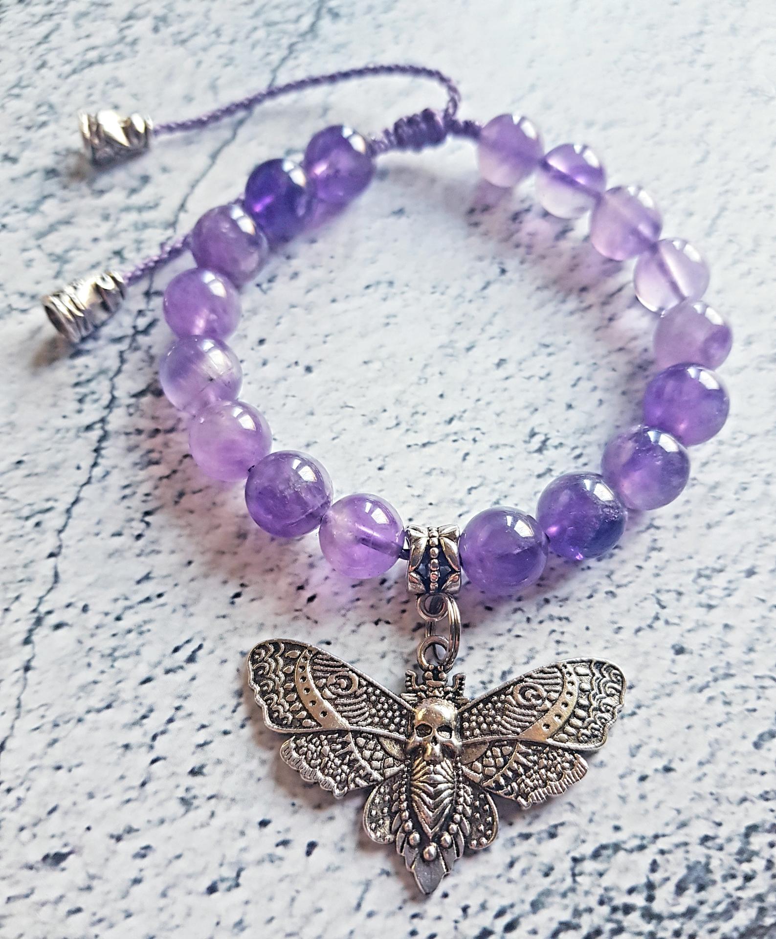Bracelet "Papillon Skull" Améthyste Lavande
