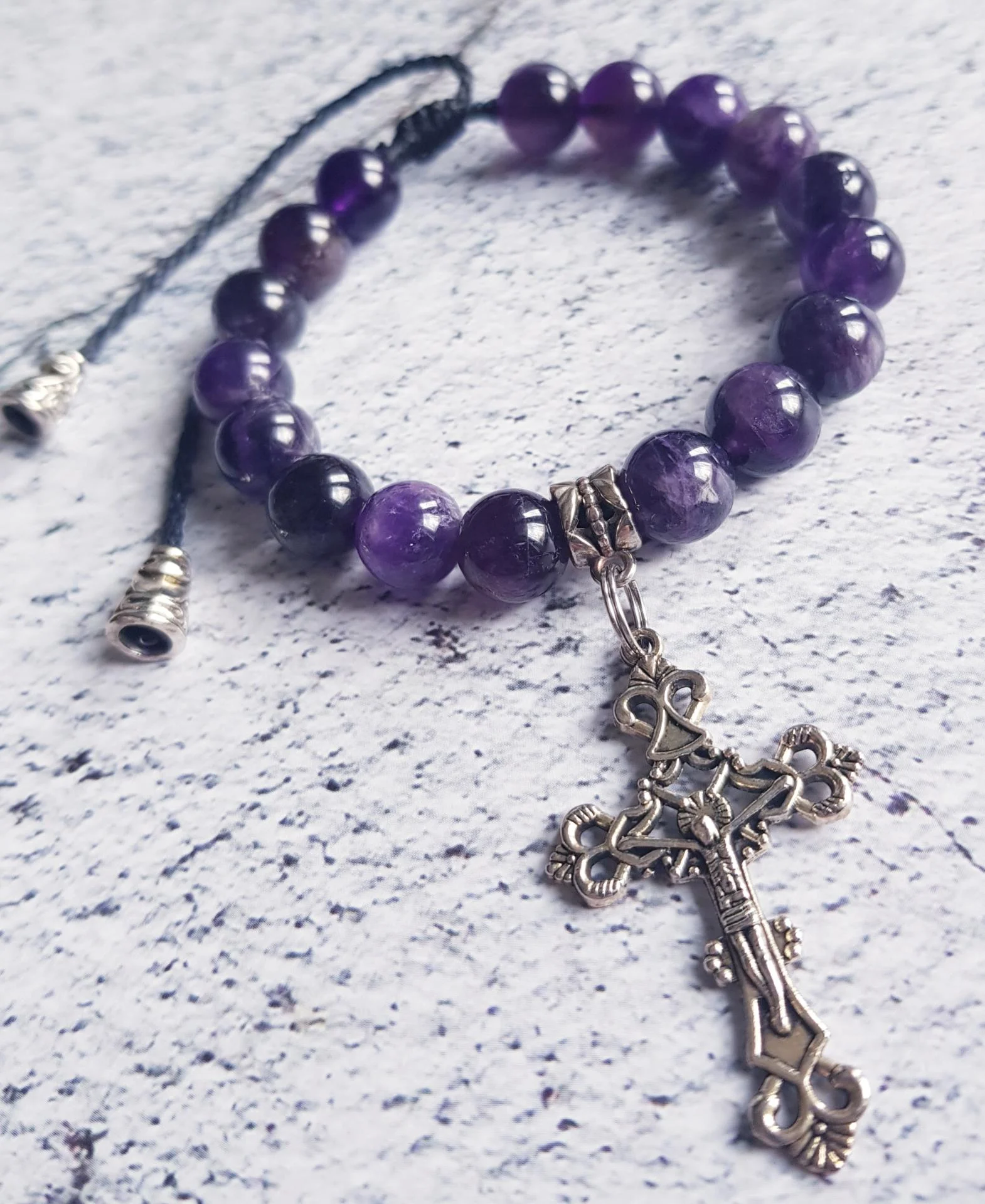 SYSTÈME IMMUNITAIRE - PURIFICATION - SOMMEIL Bracelet "Croix" en Pierres Naturelles Black Améthyste de 6.8.10 Mm sur cordon ajustable.Ce magnifique bracelet élaboré en Pierres Naturelles de Black Améthyste , un bijou entièrement fait main, de même que toutes les créations proposées par "Christ'Arts".En Black Améthyste de haute qualité afin de vous faire bénéficier de la totalité des vertus et des propriétés énergétiques de cette pierre fabuleuse, sans rien enlever à son éclat ni à sa beauté. Les pierres de ce bracelet en Brack Améthyste sont montées sur un cordon ajustable afin de s’adapter au mieux à votre poignet.C'est la Pierre des Hommes d'affaires.Chakra Couronne - Signes Astrologiques de prédilection: Sagittaire - Poissons - Vierge - Capricorne.