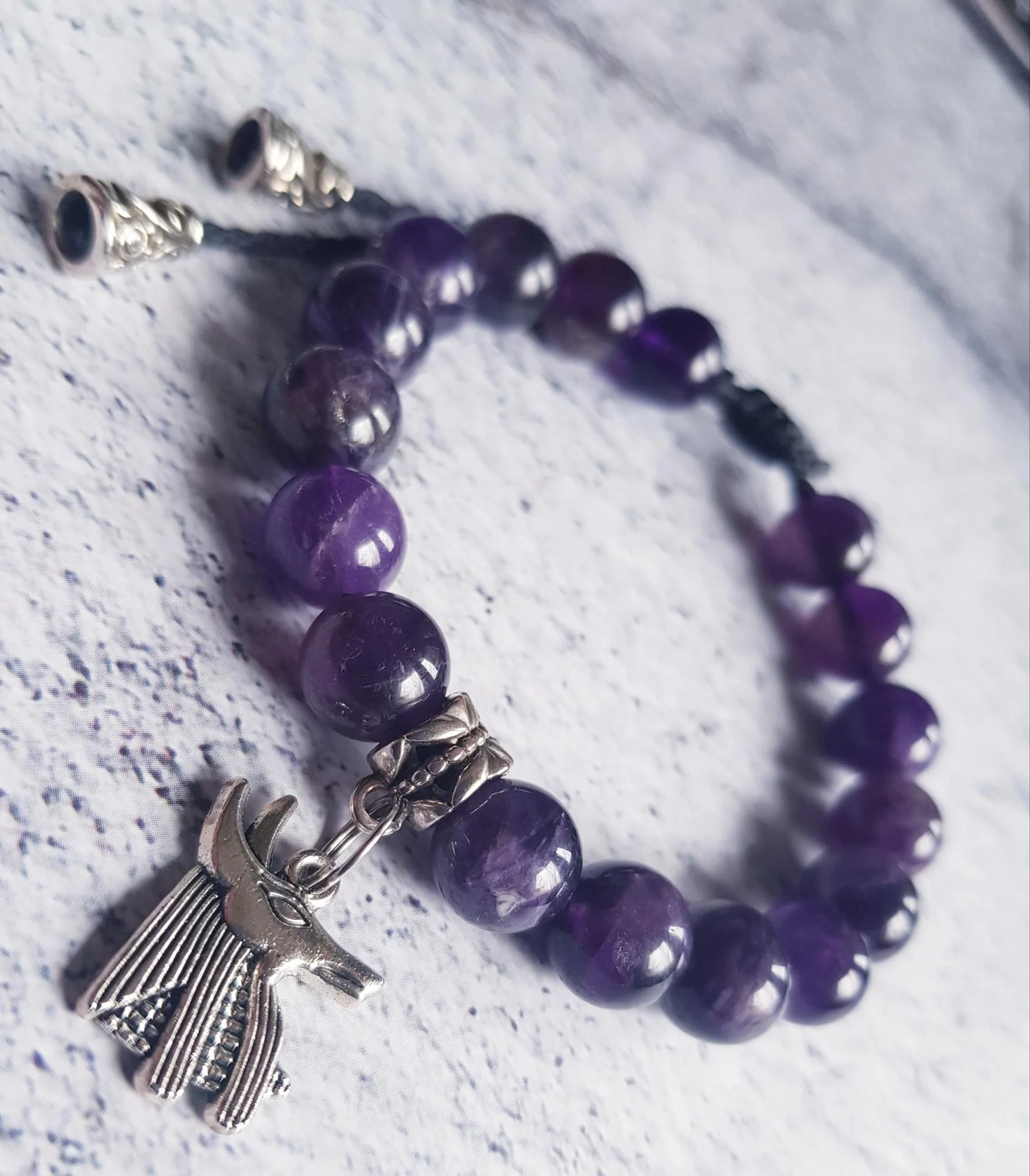 SYSTÈME IMMUNITAIRE - PURIFICATION - SOMMEIL Bracelet "Anubis" en Pierres Naturelles Black Améthyste de 6.8.10 Mm sur cordon ajustable.Ce magnifique bracelet élaboré en Pierres Naturelles de Black Améthyste , un bijou entièrement fait main, de même que toutes les créations proposées par "Christ'Arts".En Black Améthyste de haute qualité afin de vous faire bénéficier de la totalité des vertus et des propriétés énergétiques de cette pierre fabuleuse, sans rien enlever à son éclat ni à sa beauté. Les pierres de ce bracelet en Brack Améthyste sont montées sur un cordon ajustable afin de s’adapter au mieux à votre poignet.C'est la Pierre des Hommes d'affaires.Chakra Couronne - Signes Astrologiques de prédilection: Sagittaire - Poissons - Vierge - Capricorne.