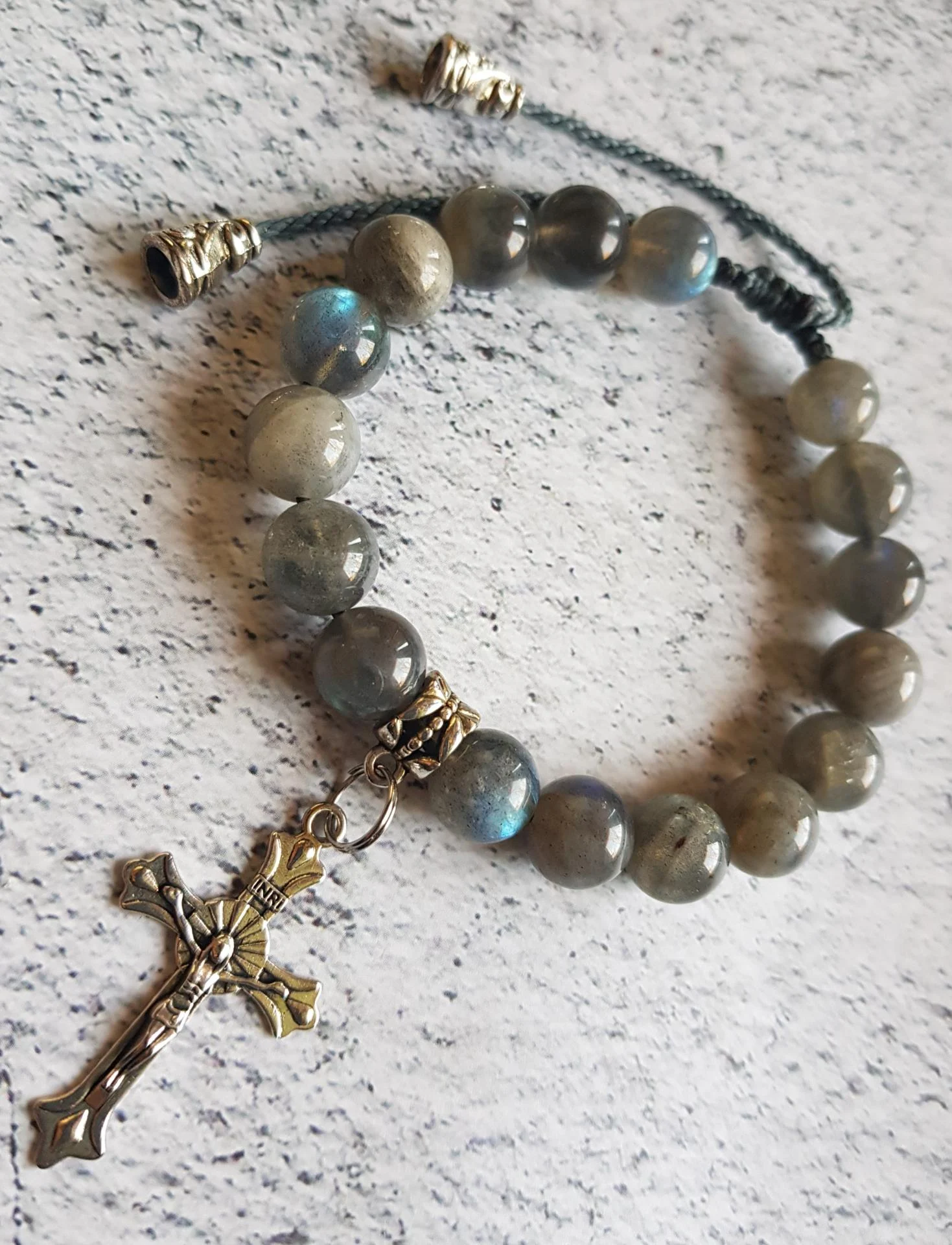 PROTECTION - ÉQUILIBRE ÉNERGÉTIQUE - Bracelet "Croix.A" en Pierres Naturelles de Labradorite 6.8.10 Mm sur cordon ajustable.Un bracelet en Pierres Naturelles de labradorite est un bijou élégant qui met en valeur la beauté naturelle de cette pierre semi-précieuse. La labradorite est une pierre qui se caractérise par sa belle couleur bleue ou verte irisée.Il est souple, confortable à porter et ajustable à différents poignets.Chakra du Coeur - Signes Astrologiques de prédilection : Sagittaire - Cancer - Poissons - Gémeaux.