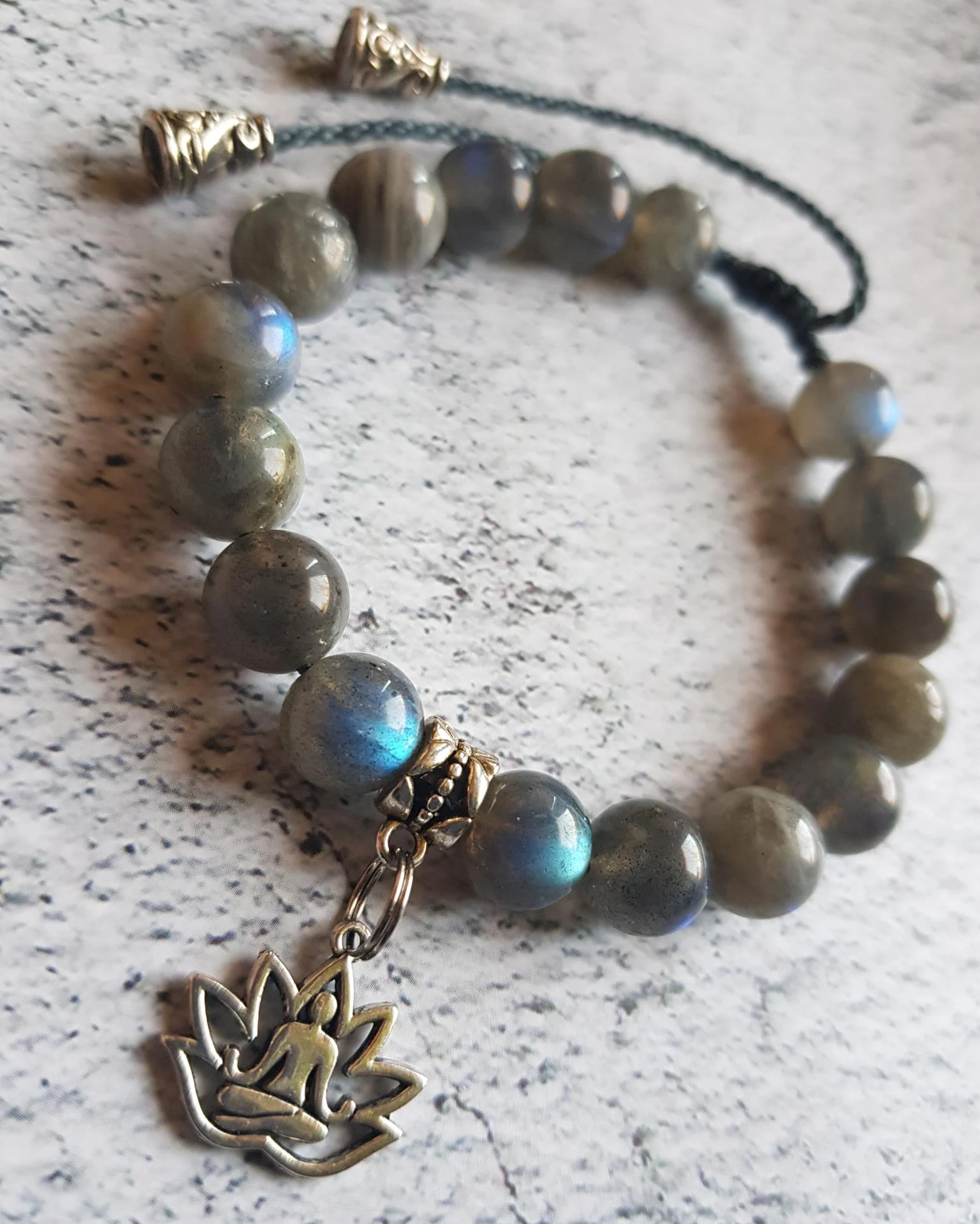 PROTECTION - ÉQUILIBRE ÉNERGÉTIQUE - Bracelet "Yoga" en Pierres Naturelles de Labradorite 6.8.10 Mm sur cordon ajustable.Un bracelet en Pierres Naturelles de labradorite est un bijou élégant qui met en valeur la beauté naturelle de cette pierre semi-précieuse. La labradorite est une pierre qui se caractérise par sa belle couleur bleue ou verte irisée.Il est souple, confortable à porter et ajustable à différents poignets.Chakra du Coeur - Signes Astrologiques de prédilection : Sagittaire - Cancer - Poissons - Gémeaux.