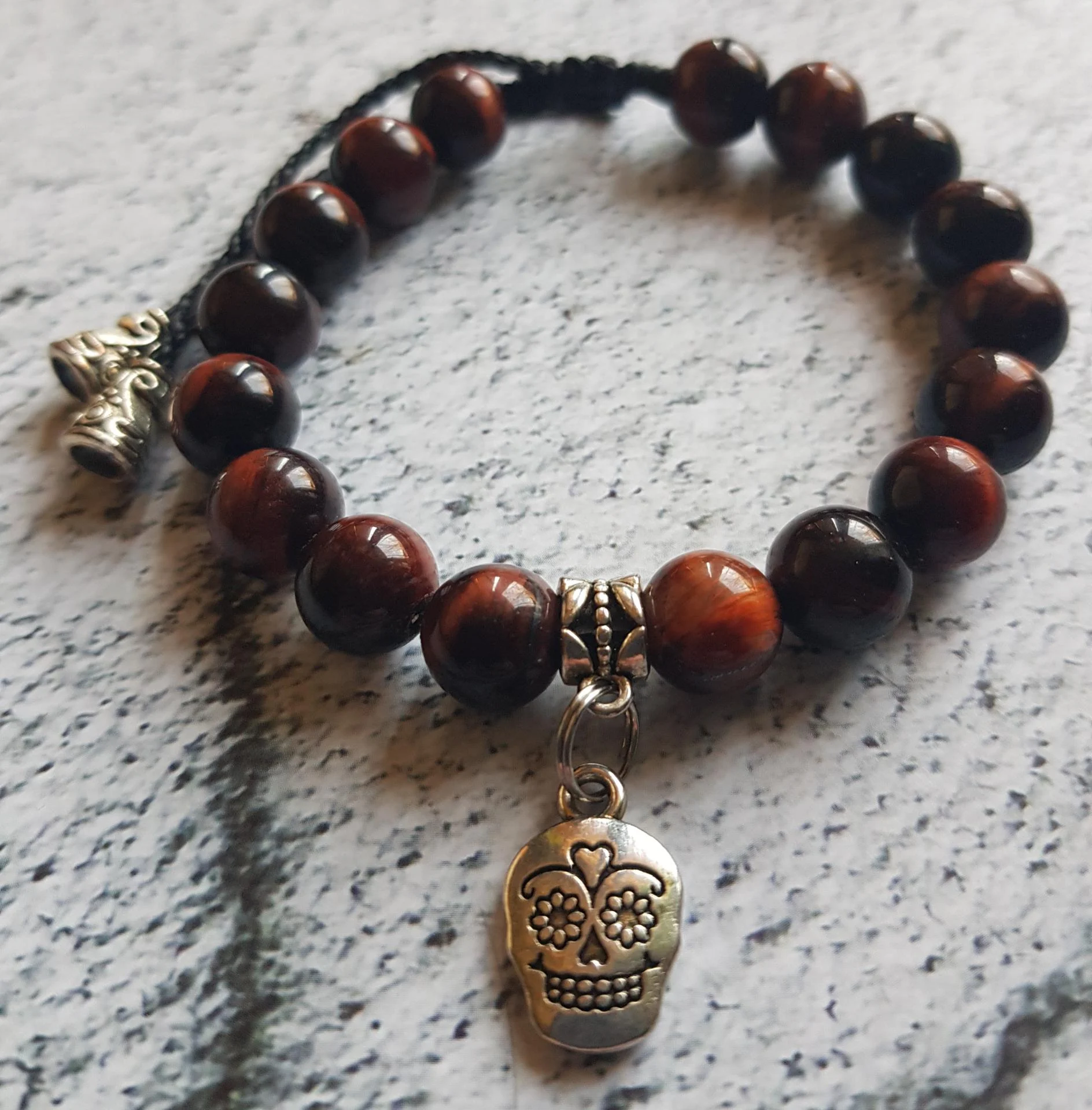 PROTECTION-FORCE-COURAGE-VITALITÉ Bracelet "Calavera" en Pierres Naturelles d’œil de Taureau 6.8.10 Mm sur cordon ajustable.Ce magnifique bracelet élaboré en Pierres Naturelles d’œil de Taureau,un bijou entièrement fait main.En Pierres Naturelles Œil de Taureau de haute qualité afin de vous faire bénéficier de la totalité des vertus et des propriétés énergétiques de cette pierre fabuleuse, sans rien enlever à son éclat ni à sa beauté. Les pierres de ce bracelet en Œil de Taureau sont montées sur un cordon ajustable afin de s’adapter au mieux à votre poignet.L’œil de Taureau recommandée pour les Sportifs.Chakras : Racine - Plexus Solaire - Signes Astrologiques de prédilection: Capricorne - Lion - Sagittaire.