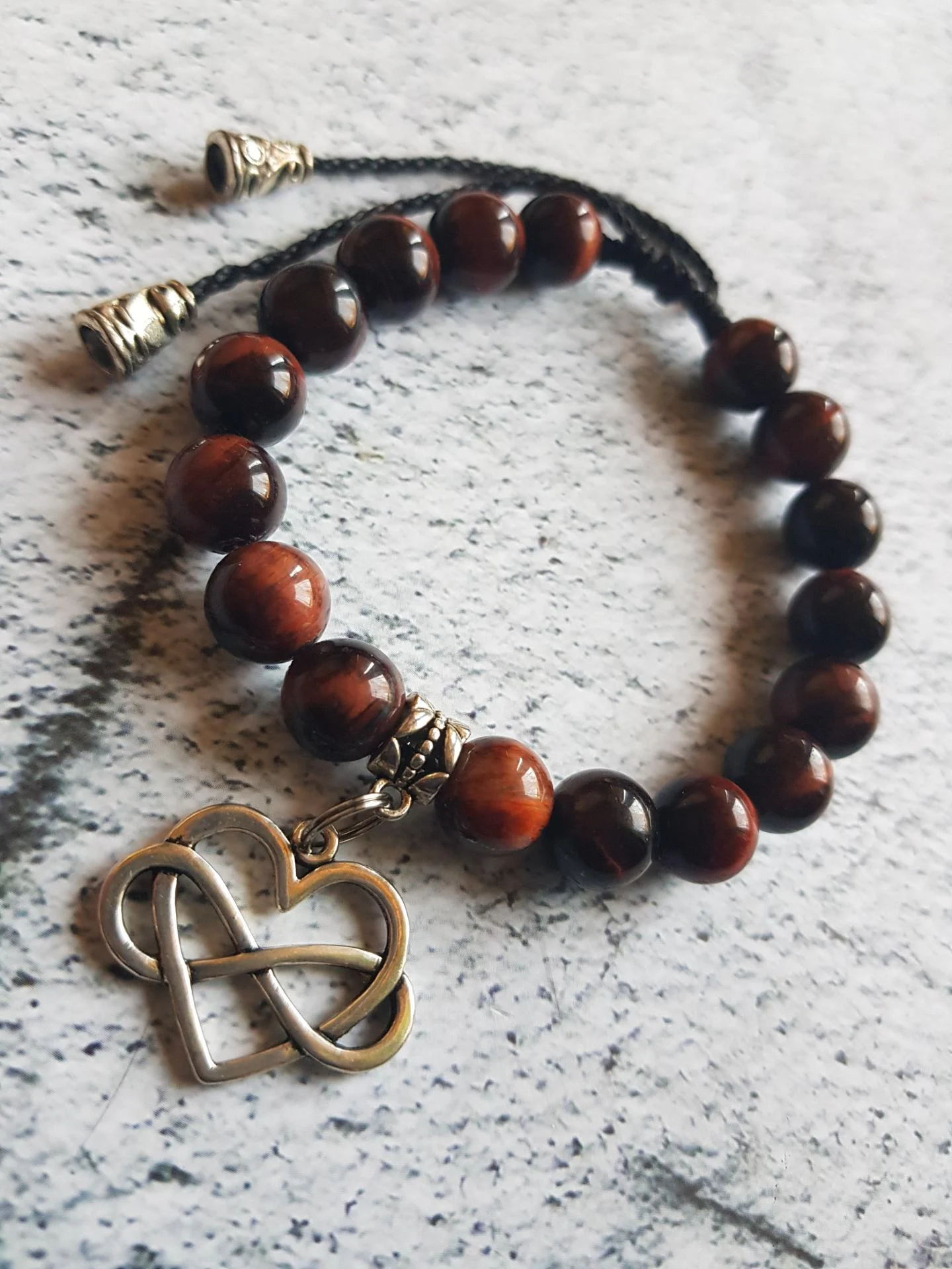 PROTECTION-FORCE-COURAGE-VITALITÉ Bracelet "Cœur Infini" en Pierres Naturelles d’œil de Taureau 6.8.10 Mm sur cordon ajustable.Ce magnifique bracelet élaboré en Pierres Naturelles d’œil de Taureau,un bijou entièrement fait main.En Pierres Naturelles Œil de Taureau de haute qualité afin de vous faire bénéficier de la totalité des vertus et des propriétés énergétiques de cette pierre fabuleuse, sans rien enlever à son éclat ni à sa beauté. Les pierres de ce bracelet en Œil de Taureau sont montées sur un cordon ajustable afin de s’adapter au mieux à votre poignet.L’œil de Taureau recommandée pour les Sportifs.Chakras : Racine - Plexus Solaire - Signes Astrologiques de prédilection: Capricorne - Lion - Sagittaire.