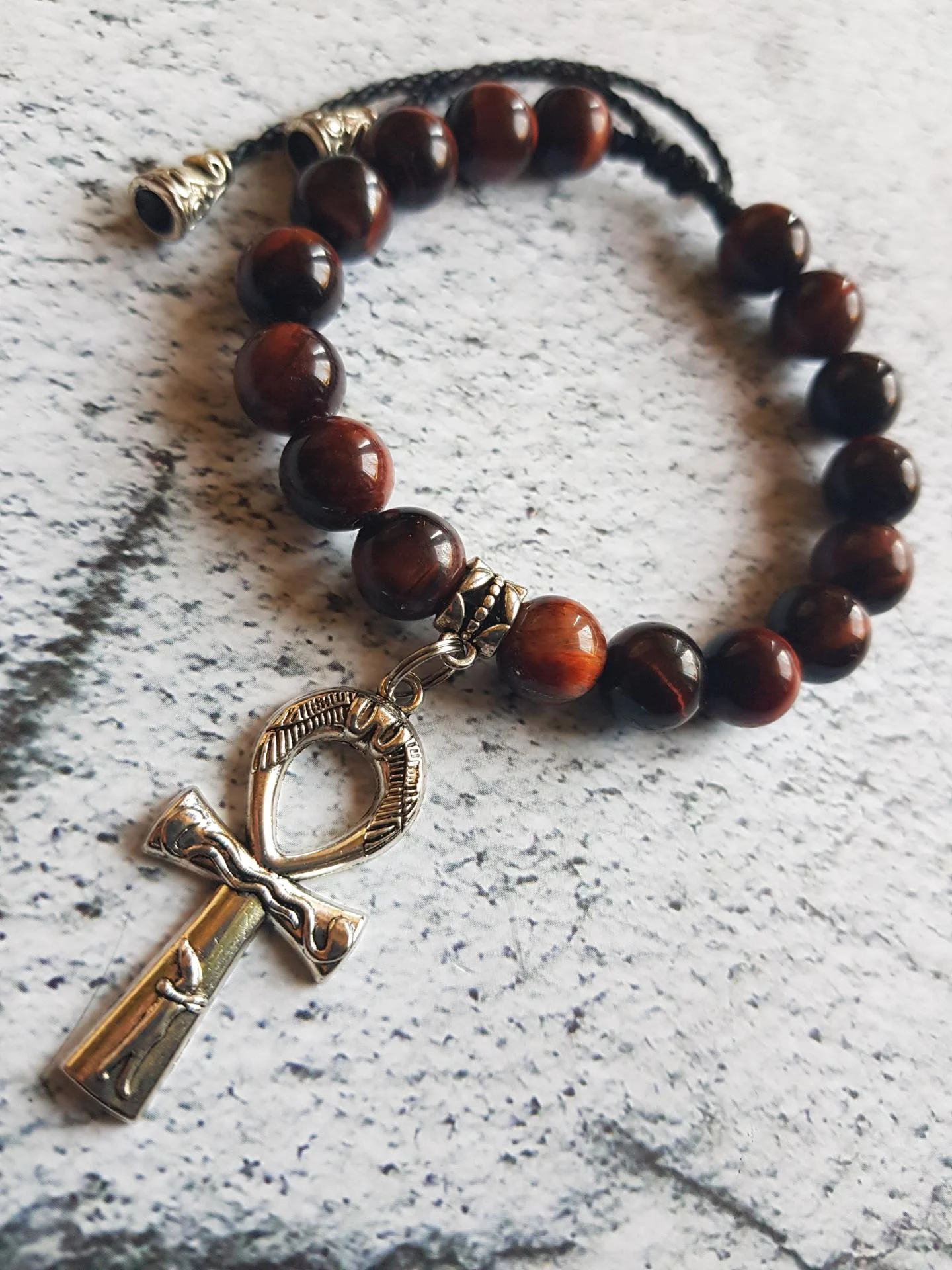 PROTECTION-FORCE-COURAGE-VITALITÉ Bracelet "Croix Ânkh.A" en Pierres Naturelles d’œil de Taureau 6.8.10 Mm sur cordon ajustable.Ce magnifique bracelet élaboré en Pierres Naturelles d’œil de Taureau,un bijou entièrement fait main.En Pierres Naturelles Œil de Taureau de haute qualité afin de vous faire bénéficier de la totalité des vertus et des propriétés énergétiques de cette pierre fabuleuse, sans rien enlever à son éclat ni à sa beauté. Les pierres de ce bracelet en Œil de Taureau sont montées sur un cordon ajustable afin de s’adapter au mieux à votre poignet.L’œil de Taureau recommandée pour les Sportifs.Chakras : Racine - Plexus Solaire - Signes Astrologiques de prédilection: Capricorne - Lion - Sagittaire.