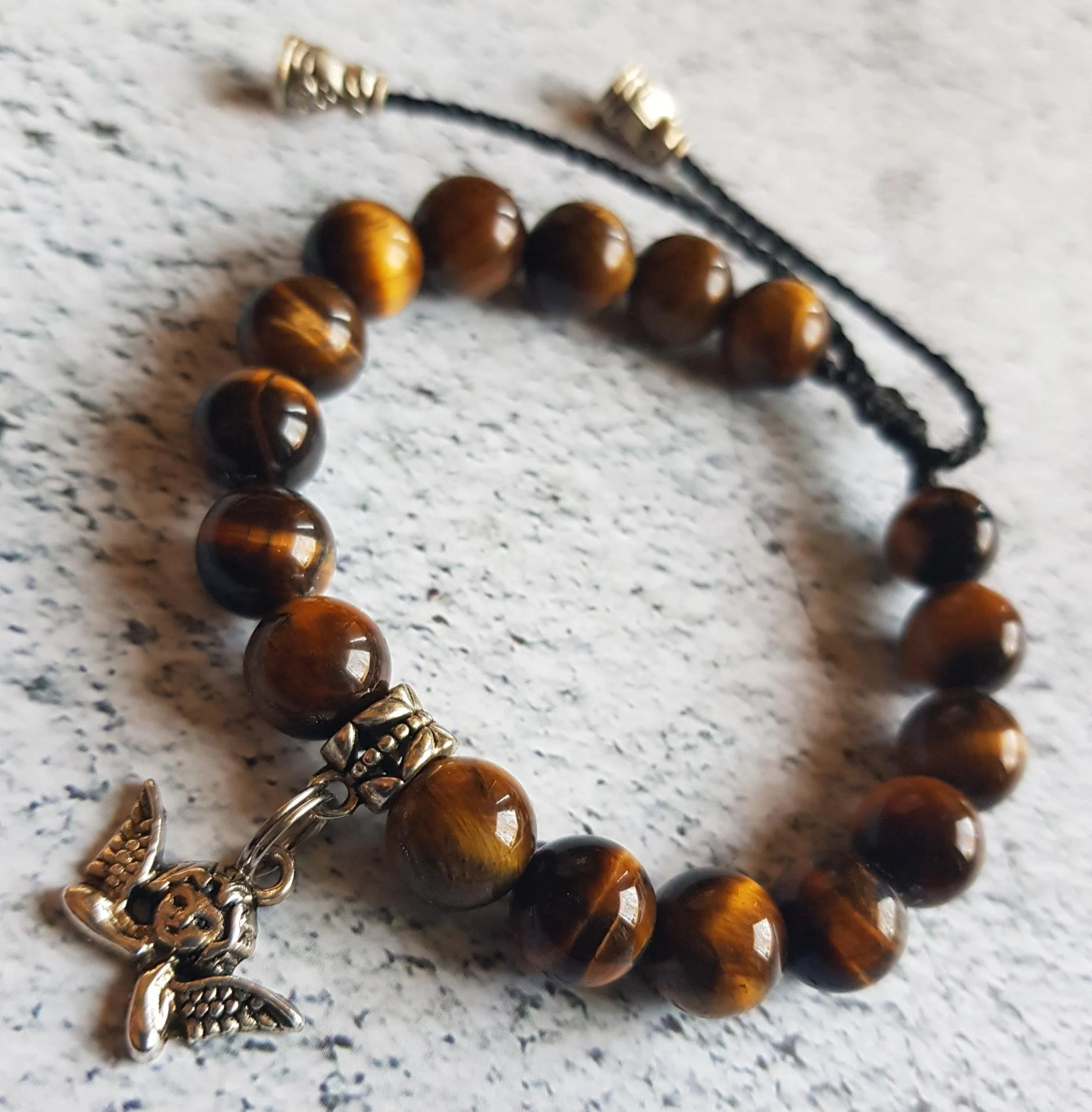 PROTECTION-CONFIANCE-DYNAMISME-JOIE DE VIVRE Bracelet "Ange.B" en Pierres Naturelles d’œil de Tigre 6.8.10 Mm sur cordon ajustable.Ce magnifique bracelet élaboré en Pierres Naturelles d’œil de Tigre , un bijou entièrement fait main, de même que toutes les créations proposées par "Christ'Arts".En Pierres Naturelles Œil de Tigre de haute qualité afin de vous faire bénéficier de la totalité des vertus et des propriétés énergétiques de cette pierre fabuleuse, sans rien enlever à son éclat ni à sa beauté. Les pierres de ce bracelet en Œil de Tigre sont montées sur un cordon ajustable afin de s’adapter au mieux à votre poignet.L’œil de Tigre peut être offert pour célébrer l'anniversaire des 18 Ans.Chakra Plexus Solaire - Signes Astrologiques de prédilection: Capricorne - Gémeaux - Lion - Vierge