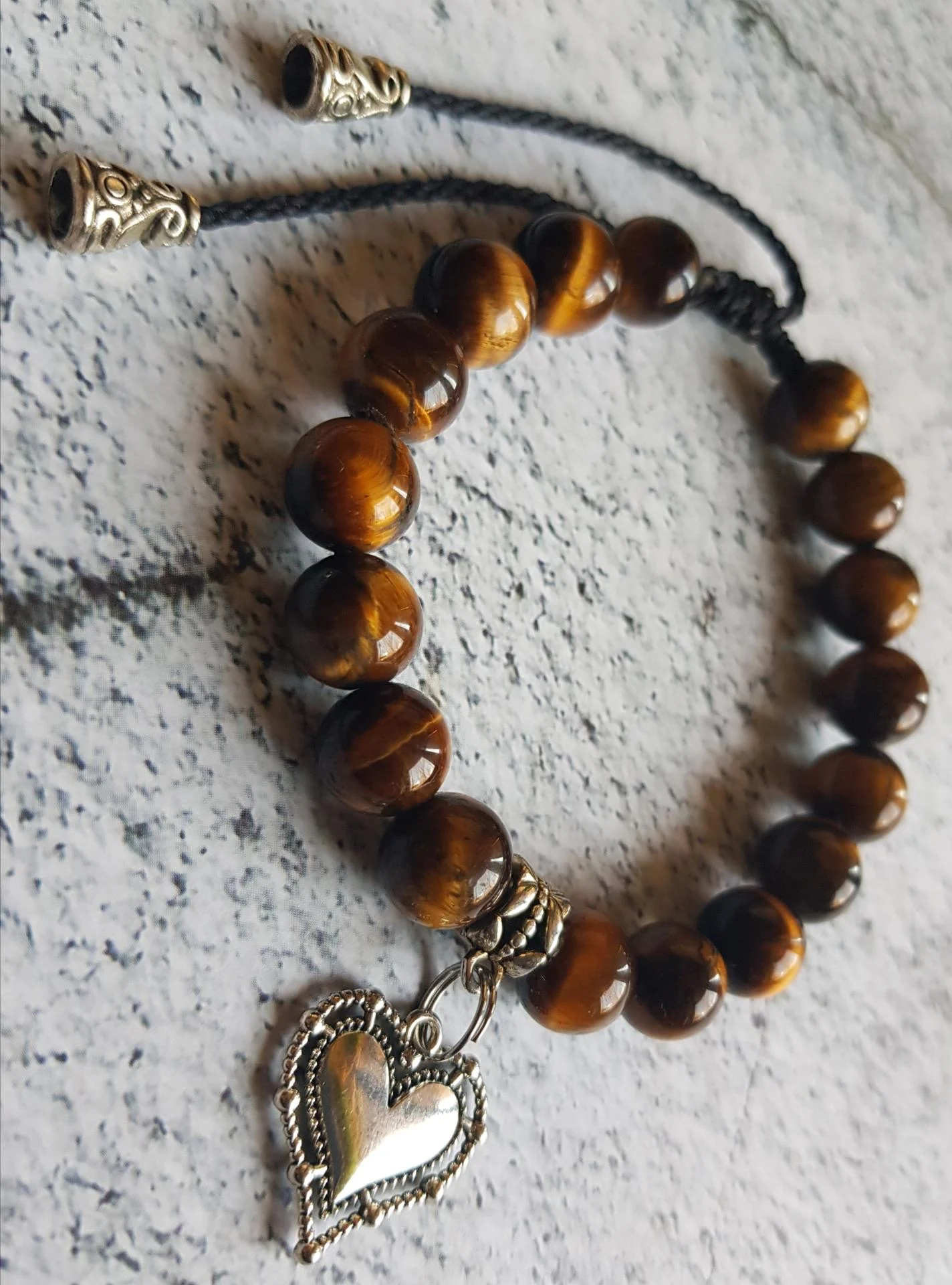 PROTECTION-CONFIANCE-DYNAMISME-JOIE DE VIVRE Bracelet "Cœur.A"en Pierres Naturelles d’œil de Tigre 6.8.10 Mm sur cordon ajustable.Ce magnifique bracelet élaboré en Pierres Naturelles d’œil de Tigre,un bijou entièrement fait main, de même que toutes les créations proposées par "Christ'Arts".En Pierres Naturelles Œil de Tigre de haute qualité afin de vous faire bénéficier de la totalité des vertus et des propriétés énergétiques de cette pierre fabuleuse, sans rien enlever à son éclat ni à sa beauté. Les pierres de ce bracelet en Œil de Tigre sont montées sur un cordon ajustable afin de s’adapter au mieux à votre poignet.Œil de Tigre peut être offert pour célébrer l'anniversaire des 18 Ans.Chakra Plexus Solaire - Signes Astrologiques de prédilection: Capricorne - Gémeaux - Lion - Vierge