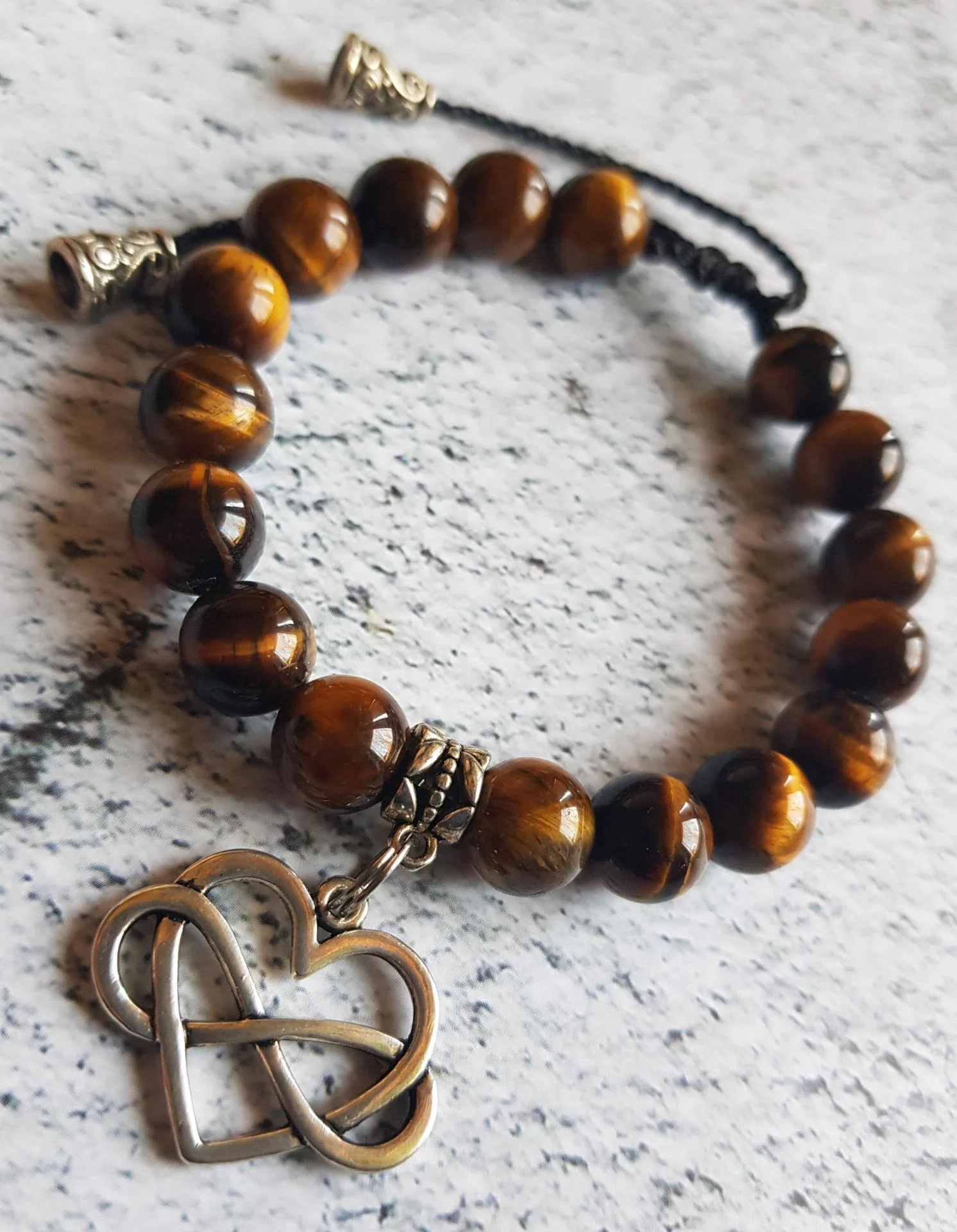 PROTECTION-CONFIANCE-DYNAMISME-JOIE DE VIVRE Bracelet "Cœur Infini" en Pierres Naturelles d’œil de Tigre 6.8.10 Mm sur cordon ajustable.Ce magnifique bracelet élaboré en Pierres Naturelles d’œil de Tigre , un bijou entièrement fait main, de même que toutes les créations proposées par "Christ'Arts".En Pierres Naturelles Œil de Tigre de haute qualité afin de vous faire bénéficier de la totalité des vertus et des propriétés énergétiques de cette pierre fabuleuse, sans rien enlever à son éclat ni à sa beauté. Les pierres de ce bracelet en Œil de Tigre sont montées sur un cordon ajustable afin de s’adapter au mieux à votre poignet.L’œil de Tigre peut être offert pour célébrer l'anniversaire des 18 Ans.Chakra Plexus Solaire - Signes Astrologiques de prédilection: Capricorne - Gémeaux - Lion - Vierge