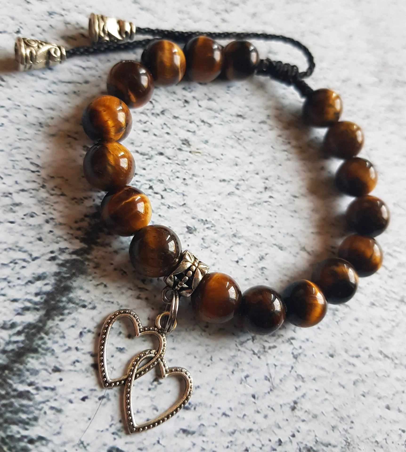 PROTECTION-CONFIANCE-DYNAMISME-JOIE DE VIVRE Bracelet "Coeur"en Pierres Naturelles d’œil de Tigre 6.8.10 Mm sur cordon ajustable.Ce magnifique bracelet élaboré en Pierres Naturelles d’œil de Tigre,un bijou entièrement fait main, de même que toutes les créations proposées par "Christ'Arts".En Pierres Naturelles Œil de Tigre de haute qualité afin de vous faire bénéficier de la totalité des vertus et des propriétés énergétiques de cette pierre fabuleuse, sans rien enlever à son éclat ni à sa beauté. Les pierres de ce bracelet en Œil de Tigre sont montées sur un cordon ajustable afin de s’adapter au mieux à votre poignet.Œil de Tigre peut être offert pour célébrer l'anniversaire des 18 Ans.Chakra Plexus Solaire - Signes Astrologiques de prédilection: Capricorne - Gémeaux - Lion - Vierge