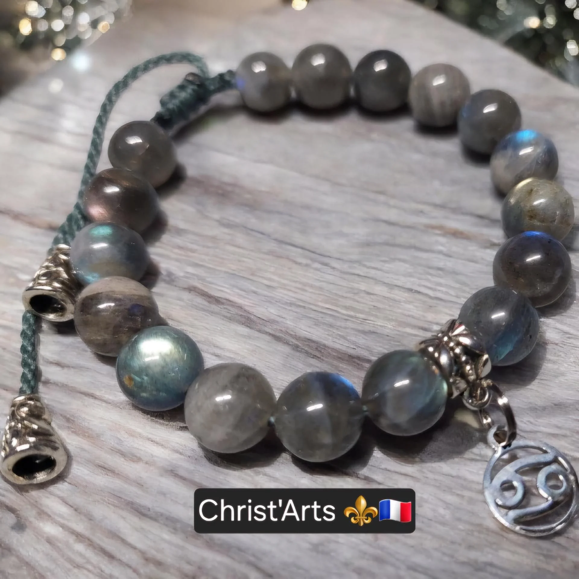 Protection--Clairvoyance Bracelets Bijoux "Christ'Arts" en Pierres Naturelles de 8.10 mm en Labradorite sur cordons réglables-Plusieurs coloris & Bijoux disponibles-Le Bracelet en Labradorite protège des énergies et des ondes négatives dégagées par les personnes qui vous entourent.La Labradorite est une pierre également utile en cas de grande fatigue physique et moral.Les personnes créatives l'apprécient car elle stimule la créativité et l'imagination.Made in le Grand-Bornand