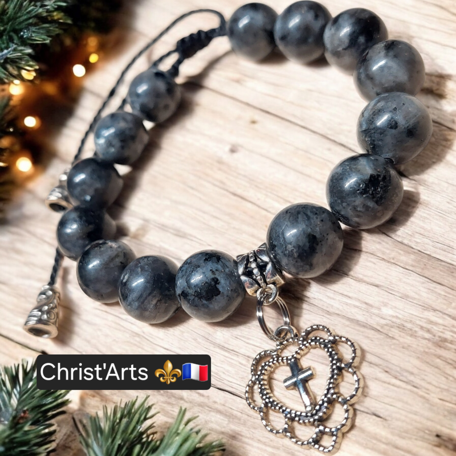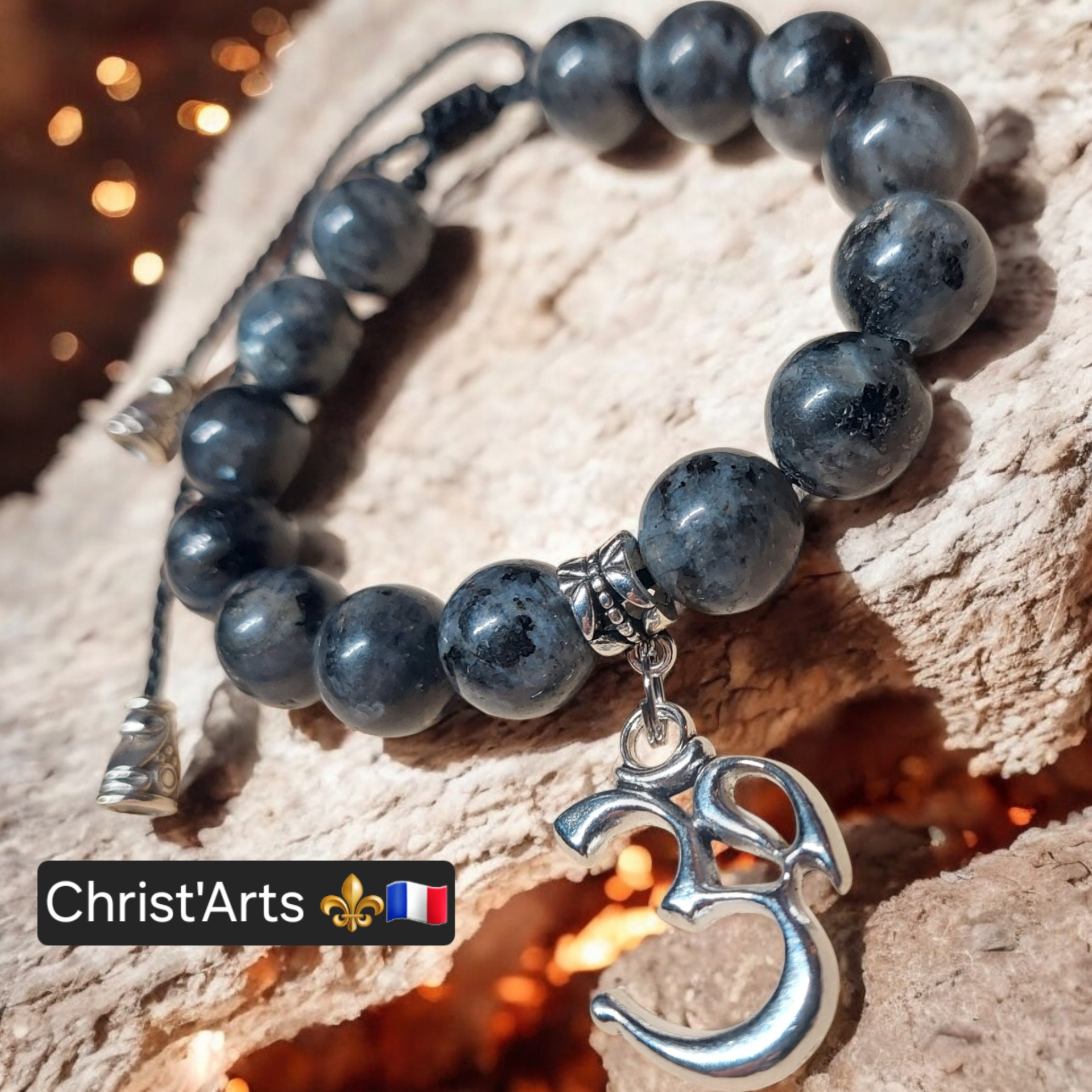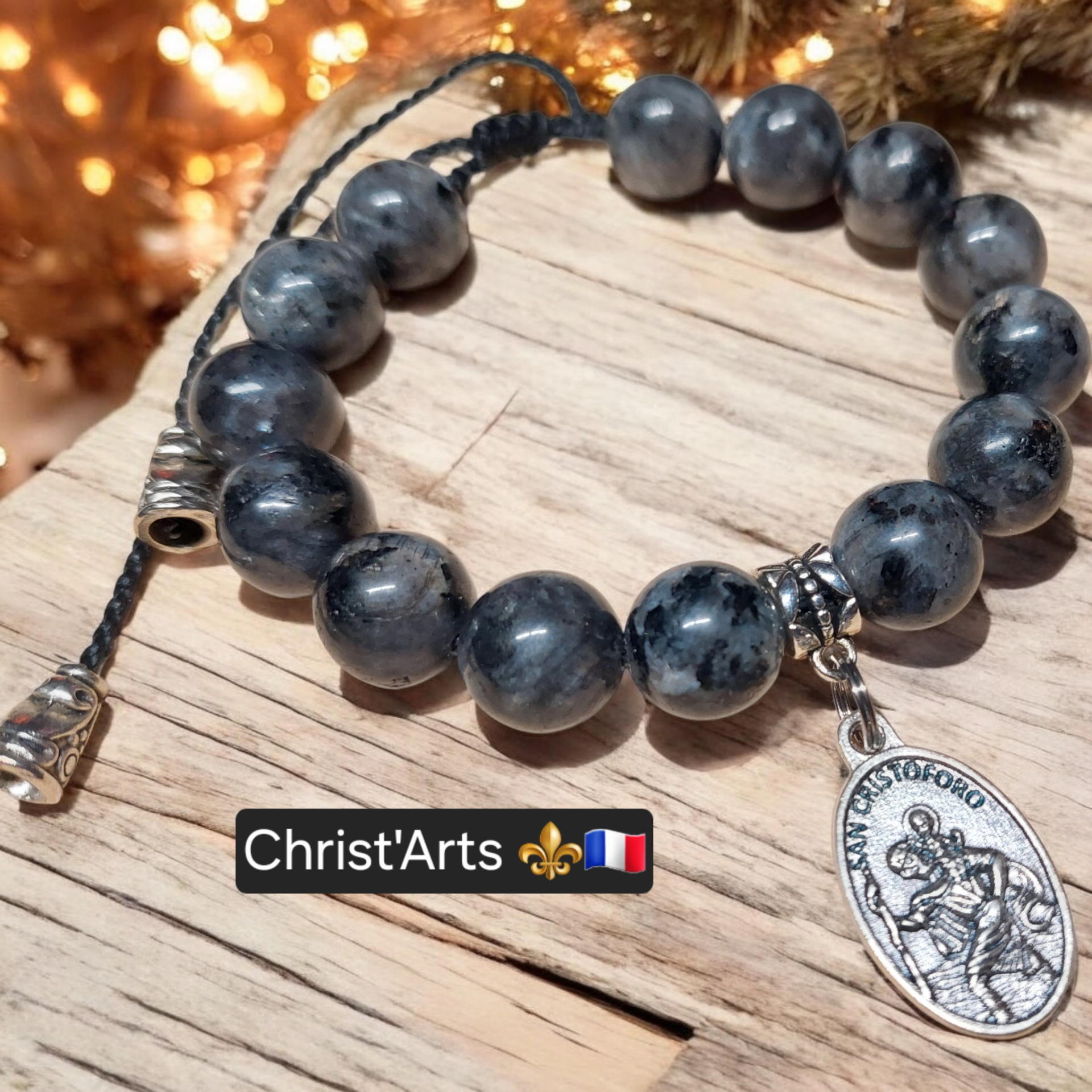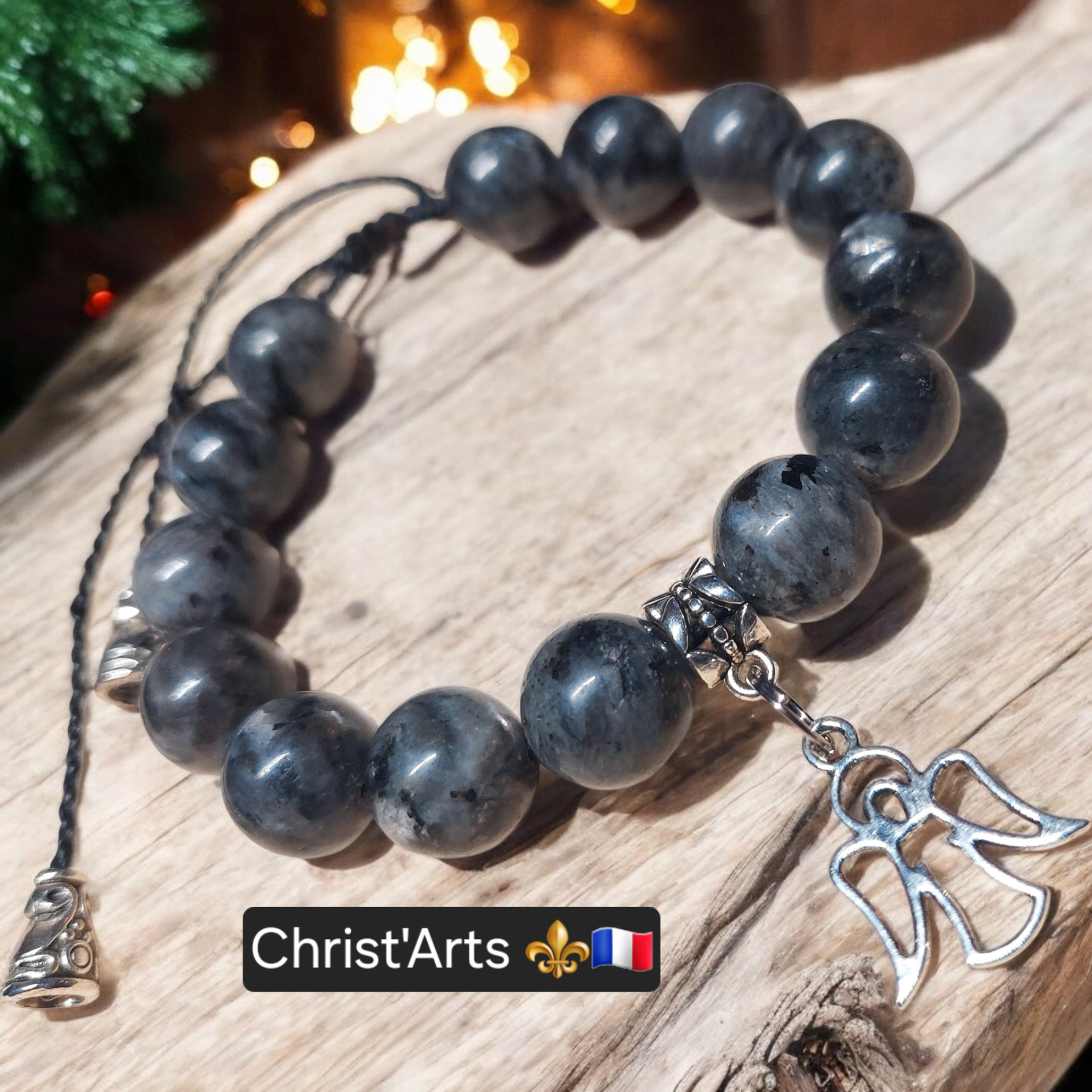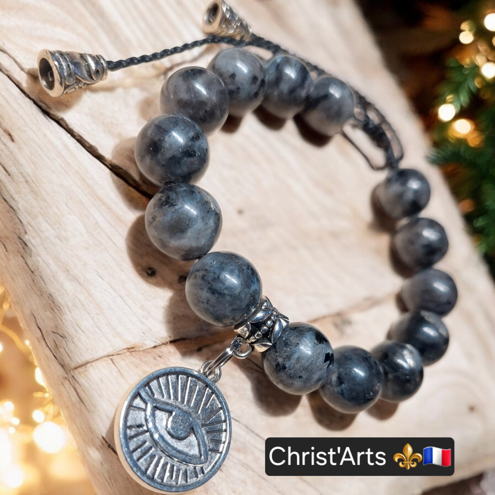 Bracelets Bijoux Christ'Arts "PROTECTION" en Pierres Naturelles de LARVIKTE 8.10.12 Mm sur cordons réglables.Plusieurs coloris de Fils & Bijoux en Acier Inoxydable.Le Bracelet en LARVIKITE est très similaire à la Labradorite.La Pierre LARVIKITE est réputée pour protéger contre les énergies négatives.De plus,elle favorise l'ancrage à la Terre,la méditation,et la patience.Associée au chakra du plexus solaire,elle libère toutes les mauvaises énergies qui se sont accumulées dans ce dernier.Ainsi,porter une LARVIKITE permet de se protéger des mauvaises ondes extérieures,mais aussi de ses propres pensées négatives.Made In le Grand-Bornand