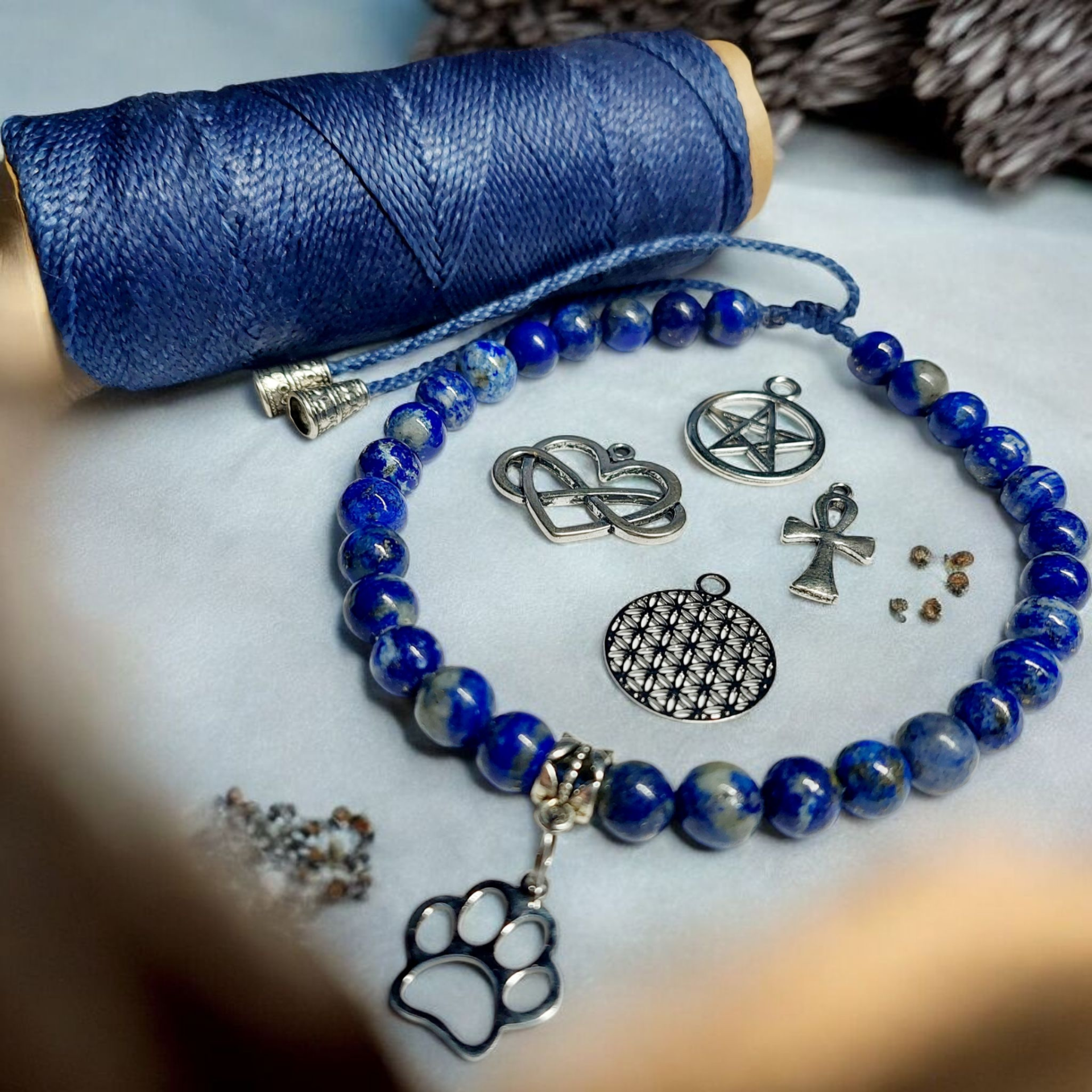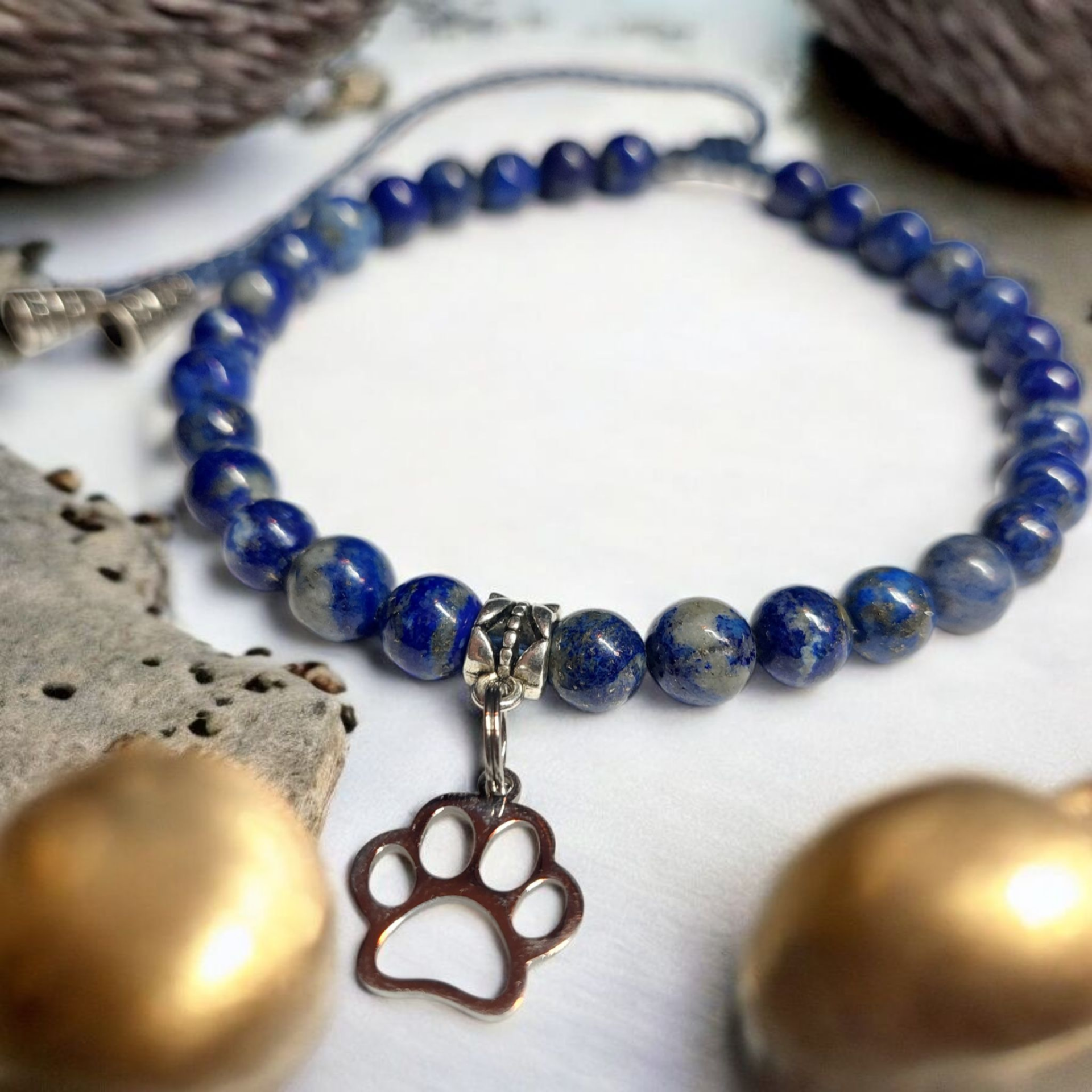 Chakra du 3 ème Oeil-Collier Christ'Arts "Chats"en Pierres Naturelles de Lapis-Lazuli de 8 mm sur cordon réglable.Le Lapis-Lazuli apporte la plénitude,la Paix intérieure et la sagesse.Le Lapis-Lazuli favorise le sommeil,apporte des bienfaits pour la respiration,la gorge et la tête.Le Lapis-Lazuli améliore les problèmes cutanés.Il est associé à la clarté mentale.Il a des propriétés Apaisantes et Equilibrantes.Il favorise la Relaxation,le Calme de l'esprit et aide à soulager le Stress et l'Anxiété du Chat qui subit une baisse d'énergie.Colliers fabriqués en France dans mon Atelier au Grand-Bornand 74450. Pierres Naturelles de Haute Qualité.Ils sont fabriqués suivant des normes bien précises pour qu’ils soient solides et sans danger pour nos compagnons.